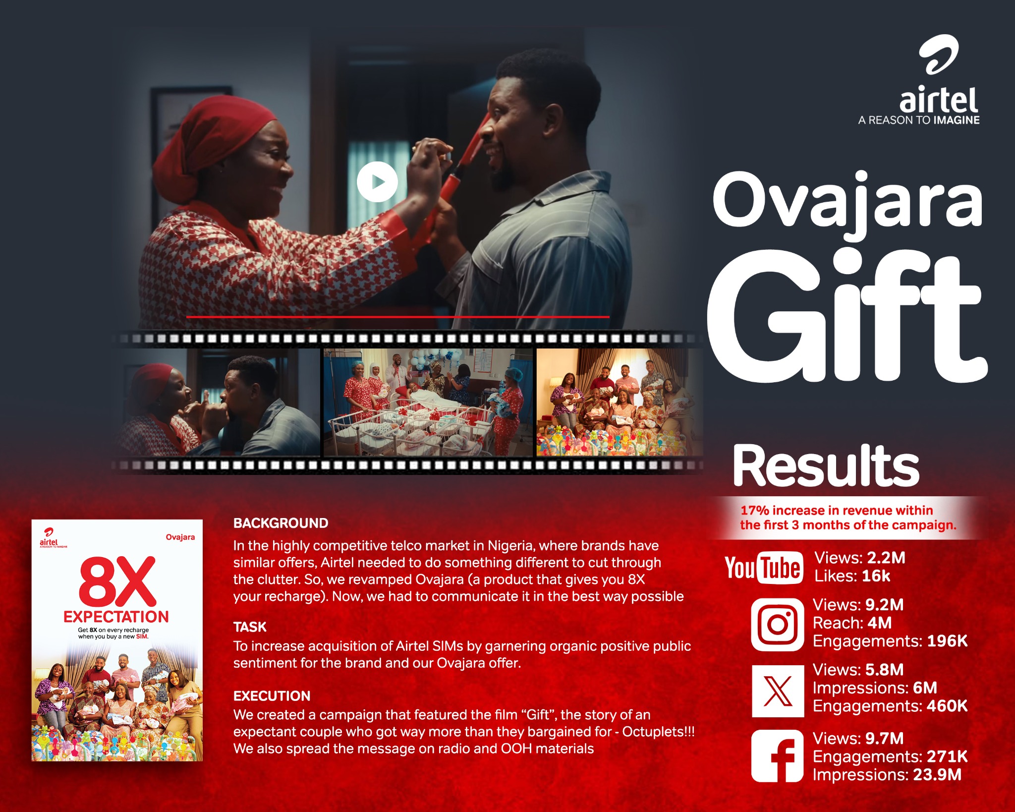 When life gives you more, you call that jara but when life gives you way more than you expect? That's Ovajara. In order to launch Airtel's new plan that offers customers 8x their recharge, we told a comical story of an expectant couple who got not just one child but Octuplets! Talk about having more than you expected.